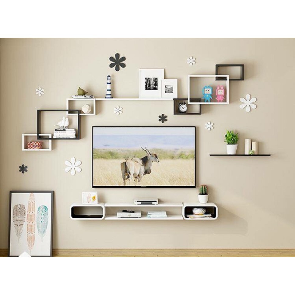 Bộ kệ treo tường chữ nhật ô vuông và thanh ngang tạo điểm nhấn cho góc tường trở nên xinh động và hấp dẫn hơn bao giờ hết.