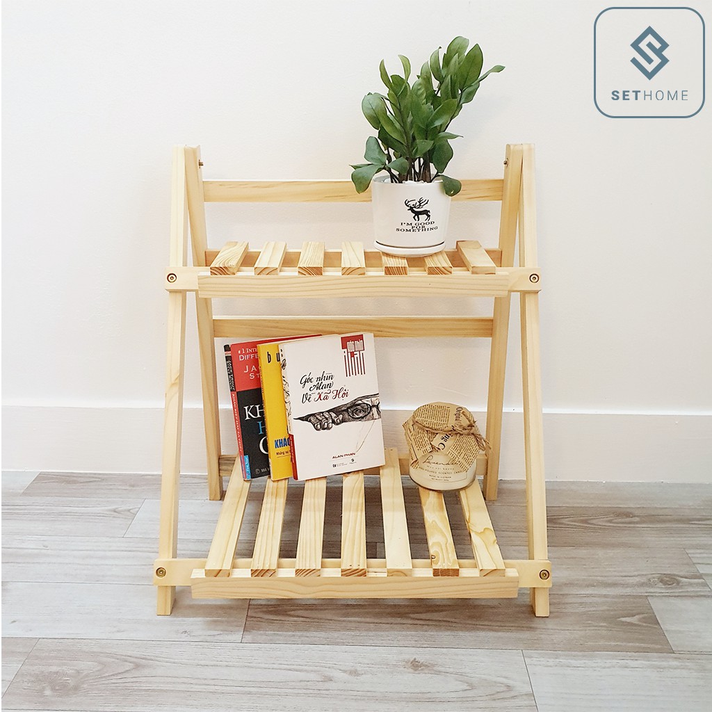 Kệ trang trí 2 tầng SETHOME để cây trang trí đồ decor sách phù hợp để phòng khách, phòng ngủ, phòng làm việc