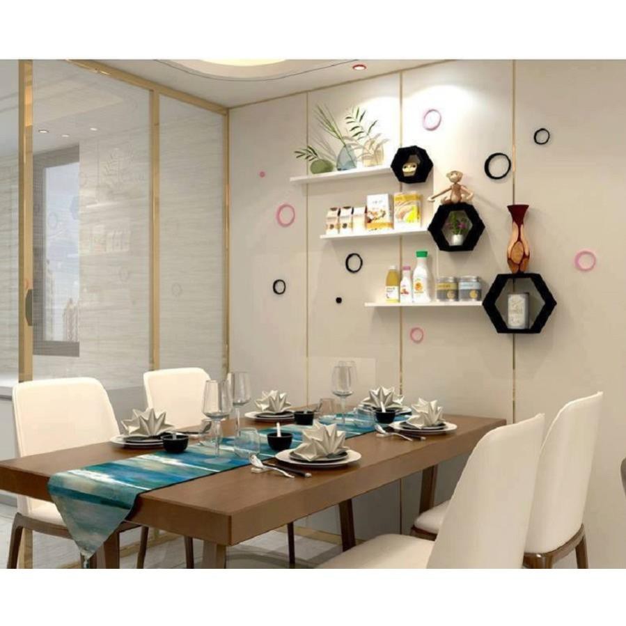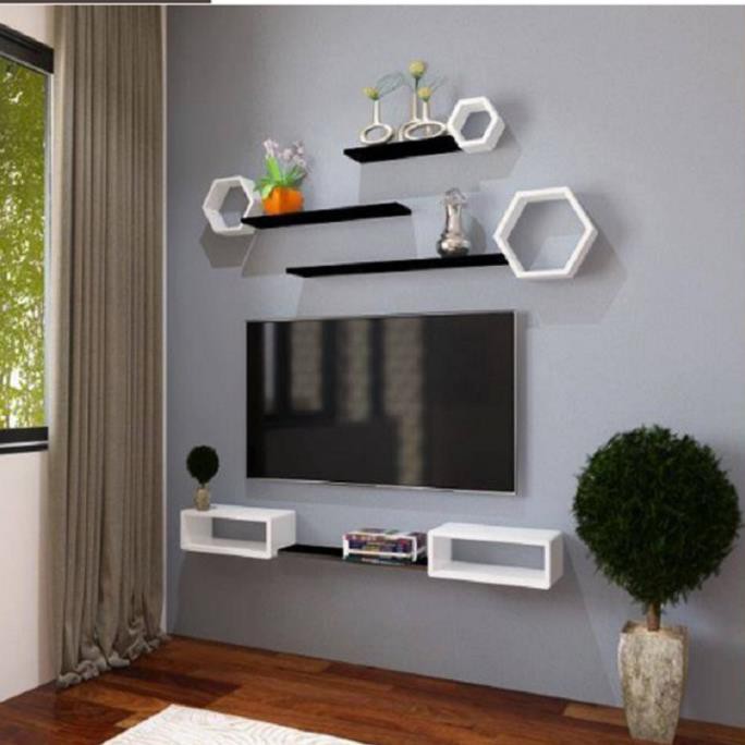 Kệ trang trí 3 lục giác đen 3 thanh ngang trắng 50x13 FREE SHIP 99K (vthm9)