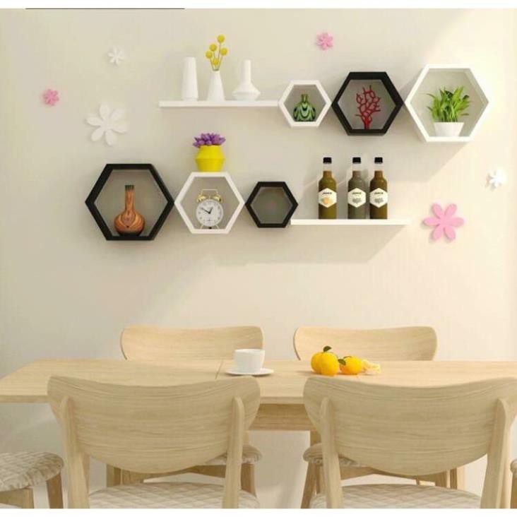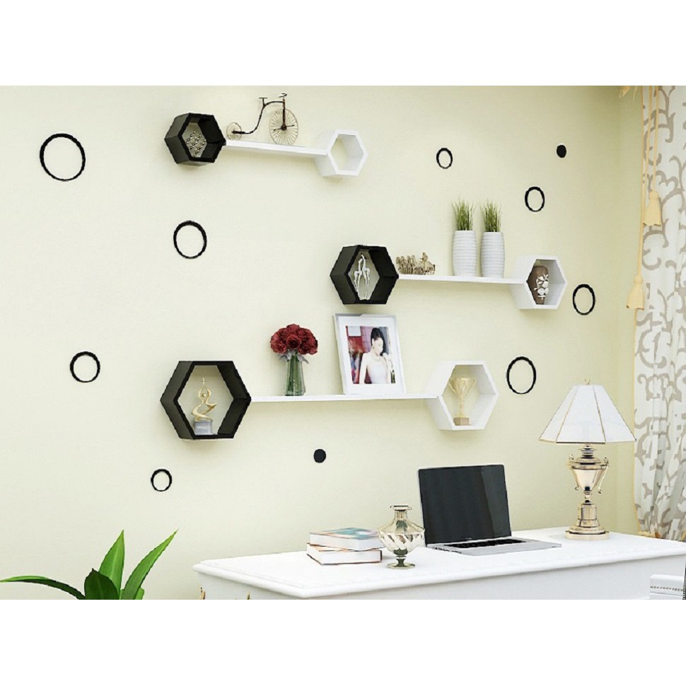 Nhà cửa & Đời sống > Nội thất > Kệ & Giá || Kệ trang trí 3 lục giác đen 3 thanh ngang trắng 50x13 FREE SHIP 99K (vthm9)Còn hàng