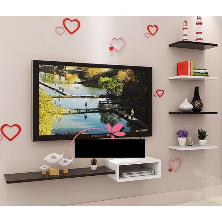 Kệ trang trí 4 thanh ngang ( 3 trắng 1 đen 30,40,50,60 sâu 15cm) FREE SHIP 99K (vthm9)