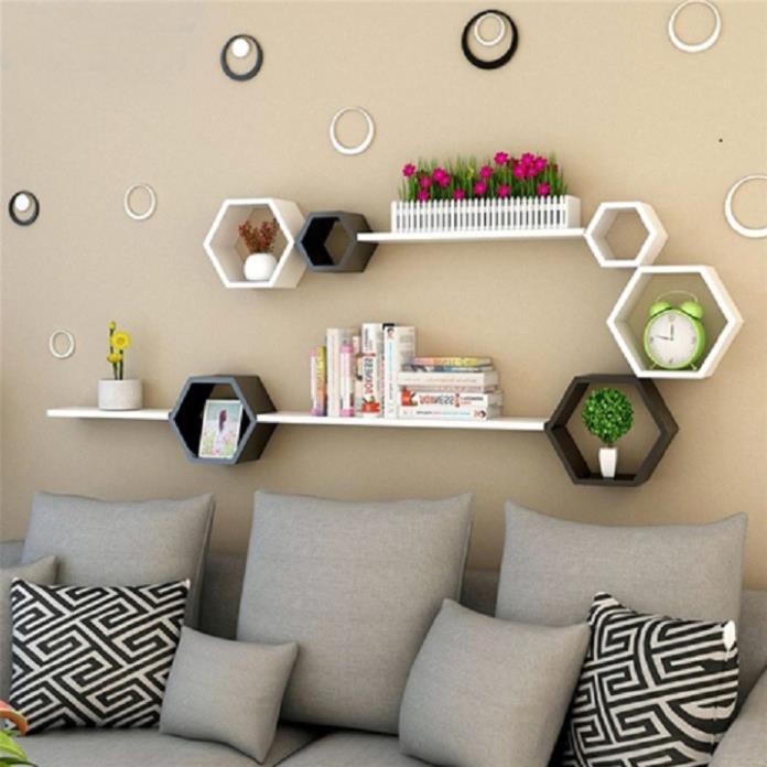 Nhà cửa & Đời sống > Nội thất > Kệ & Giá || Kệ trang trí 6 ô lục giác và 4 thanh ngang trắng 50 x13cm FREE SHIP 99K (vthm9)Còn hàng