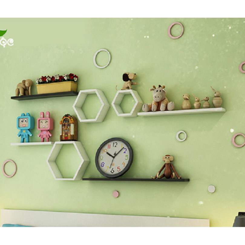 Kệ trang trí 6 ô lục giác và 4 thanh ngang trắng 50 x13cm FREE SHIP 99K (vthm9)