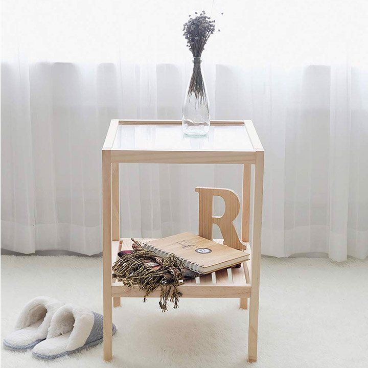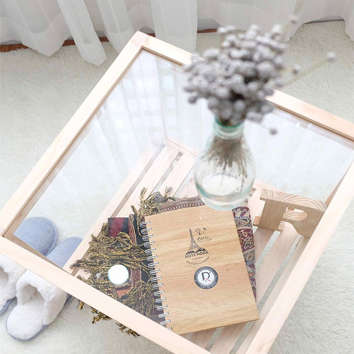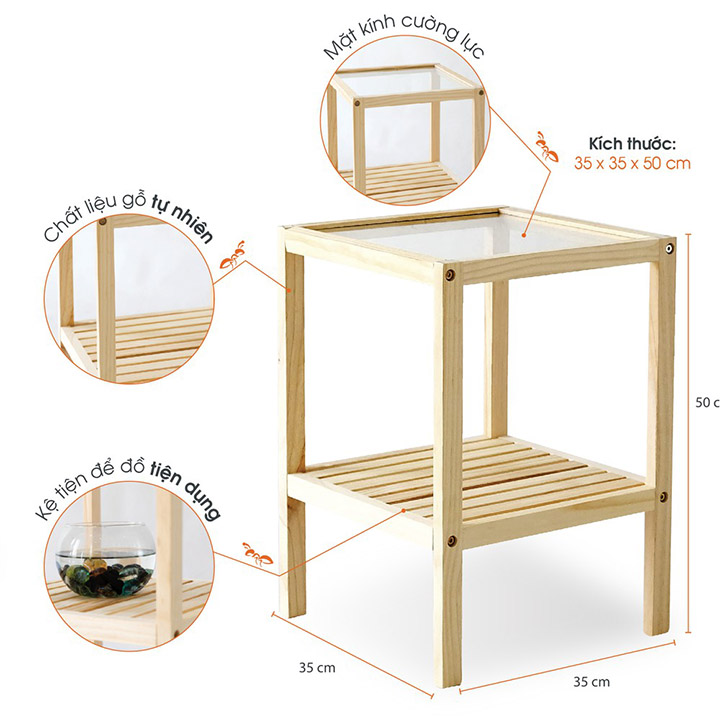 - Chất liệu: Gỗ thông nhập khẩu. Kính cường lực dày 5 mm.