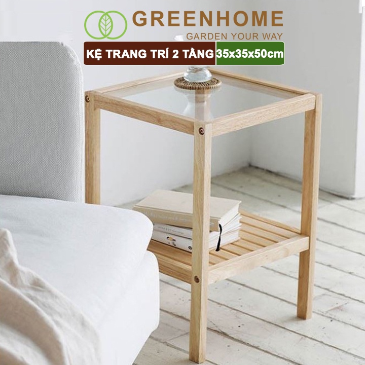 Nhà cửa & Đời sống > Làm vườn > Trang trí vườn || Kệ trang trí, D35xR35xC50cm, 2 tầng, gỗ thông, mặt kính, thiết kế hiện đại, tháo lắp dễ dàng | GreenhomeCòn hàng