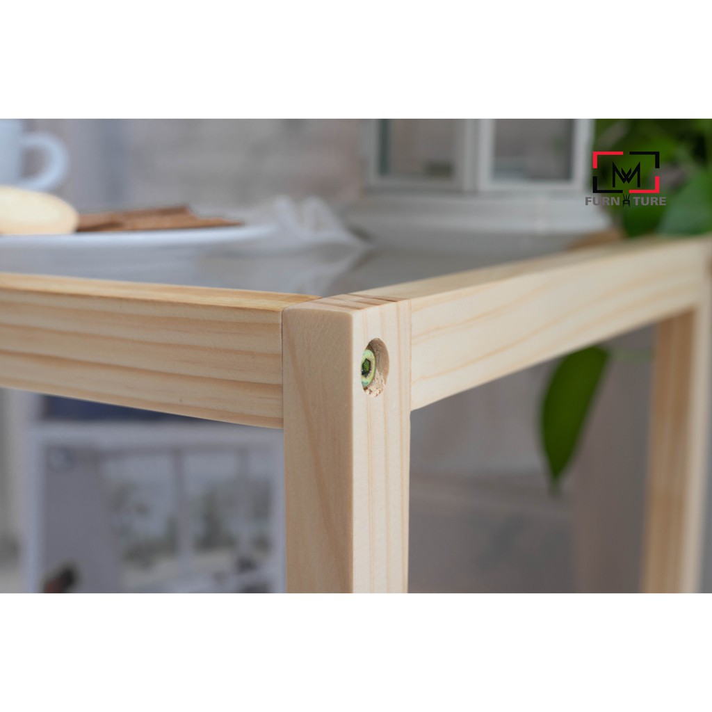 - Chất liệu: Gỗ thông nhập khẩu Newzealand, mặt kính cường lực