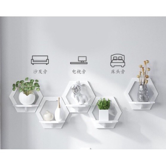 Kệ Trang Trí Decor Dán Tường APF Hình Lục Giác Chất Liệu Nhựa Picomat Siêu Nhẹ Tặng Kèo Keo Dán📌THÔNG TIN SẢN PHẨM
