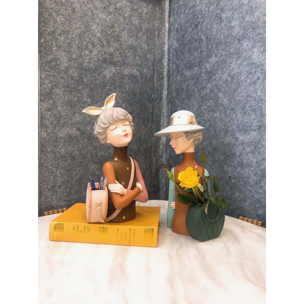 Kệ trang trí decor, tượng trang trí, cô búp bê cao cấp sang trọng, lọ hoa độc lạ, cắm, để bút, remote, cọ trang điểm