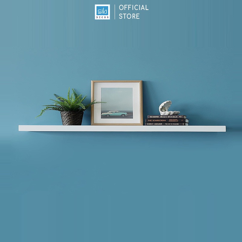 [Minimalist] Chiếc kệ gỗ màu trắng kiểu dáng đơn giản, đẹp mắt mang đến sự hiện đại cho không gian phòng khách, phòng ngủ, phòng làm việc hay nhà bếp. Kệ gỗ thanh ngang màu trắng là một lựa chọn tuyệt vời để trưng bày các đồ trang trí, khung hình, chậu cây, những món đồ đặc biệt của bạn cũng như những cuốn sách.Kệ gỗ đặc dày 25mm chống ẩm lõi xanh, hệ kết cấu treo tường chắc chắn với giá đỡ kim loại giấu chân hoàn toàn, rất đẹp và sang trọng.