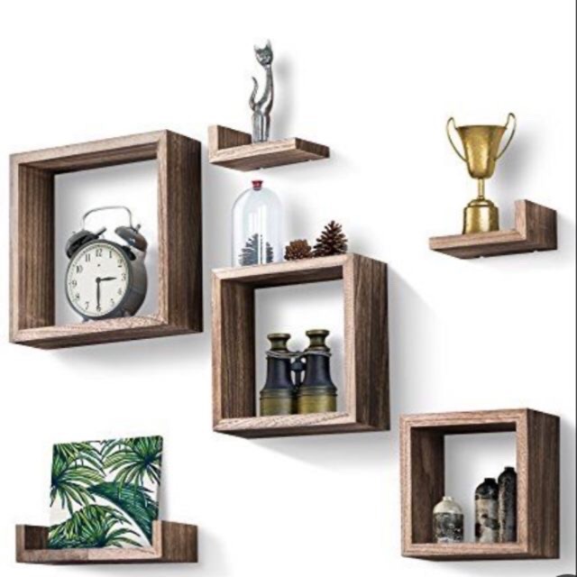 Kệ gỗ treo tường 3 ô vuông (30,25,20)2 chữ L (25x10)và 1 chữ u (30x10)