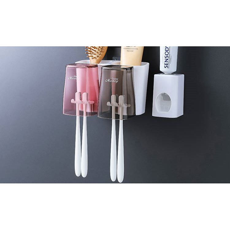 Kệ Treo Bàn Chải Đánh Răng Bao Gồm Cả Ly Nhựa và Kệ Nặn Kem