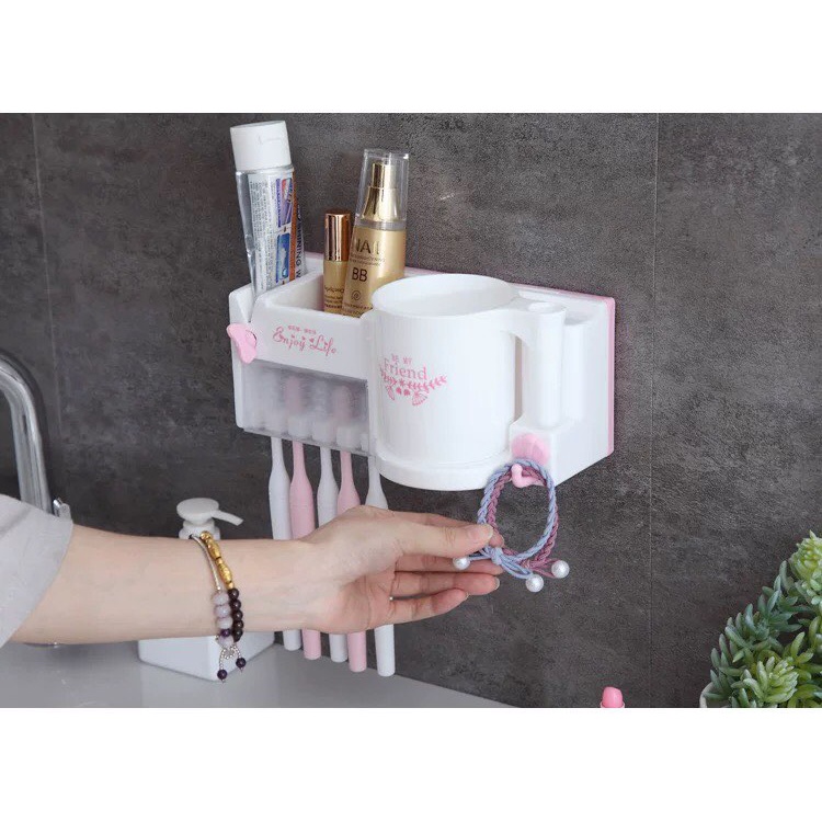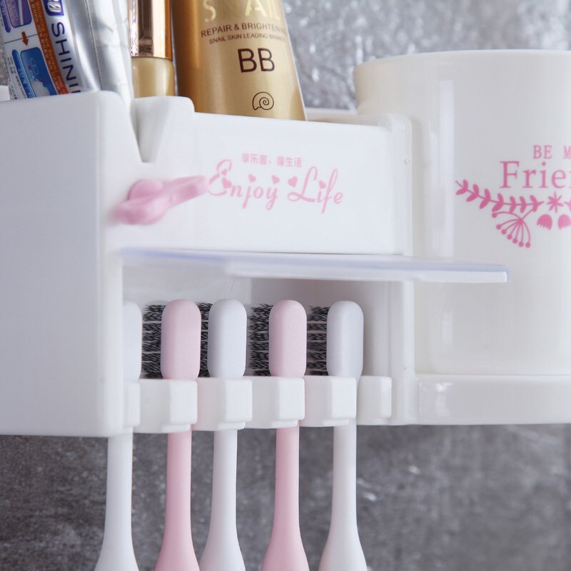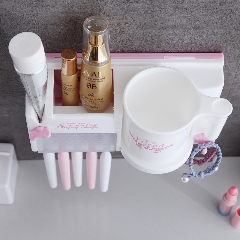 Kệ treo bàn chải đánh răng dán tường, Giá treo bàn chải nhà tắm kèm cốc
