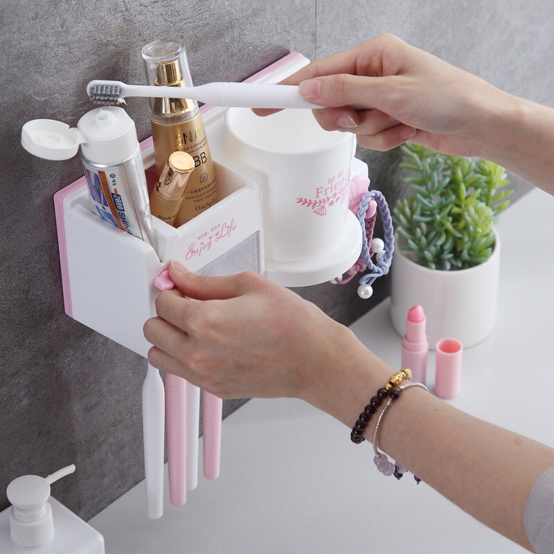 Nhà cửa & Đời sống > Đồ dùng phòng tắm > Kệ đựng bàn chải, kệ nhả kem đánh răng || Kệ treo bàn chải đánh răng dán tường, Giá treo bàn chải nhà tắm kèm cốcCòn hàng