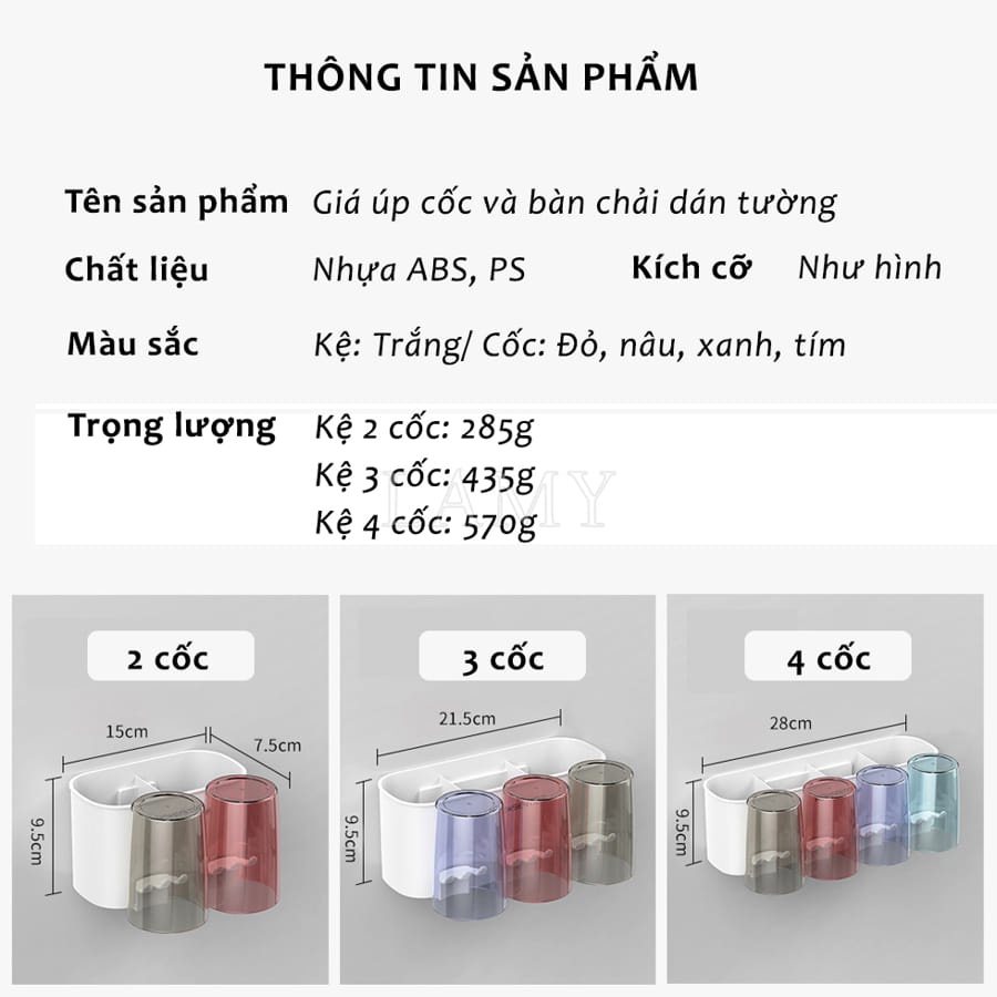 Giá đựng bàn chải 3 cốc: 7.5 * 9.5 * 21.5cm