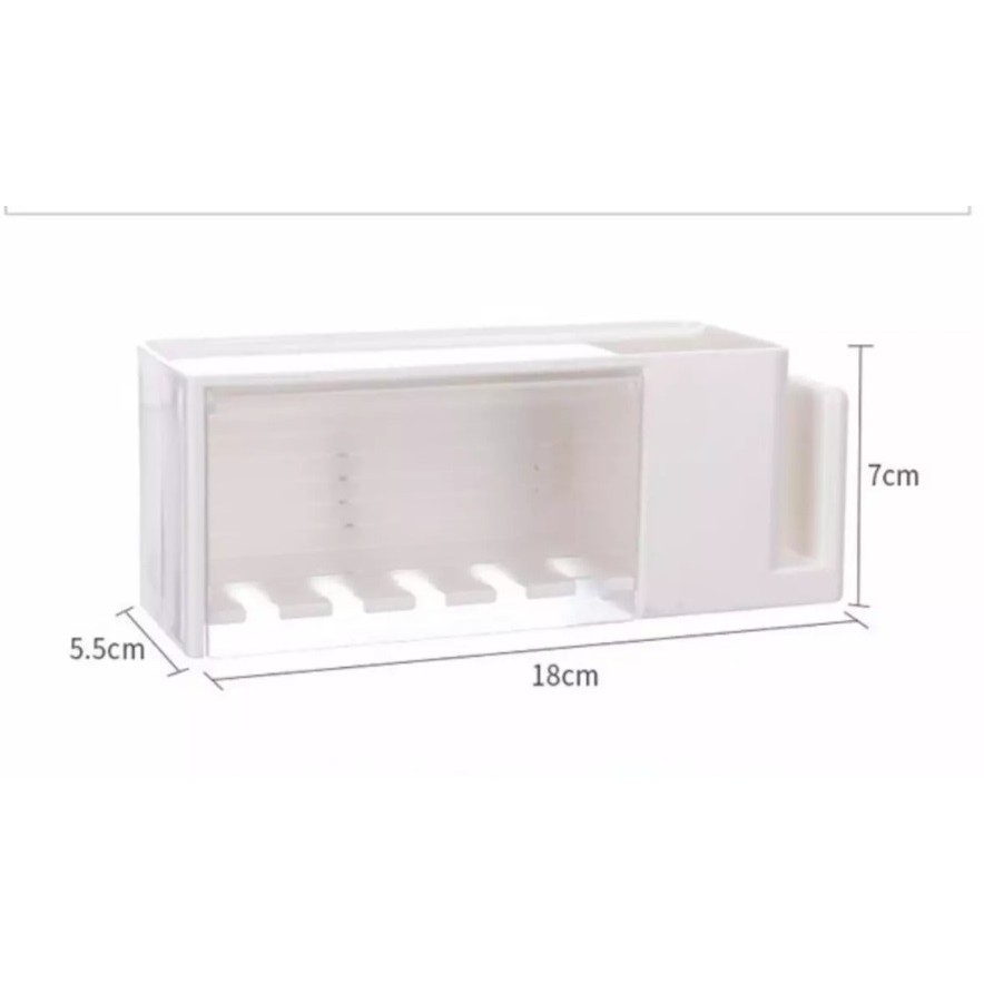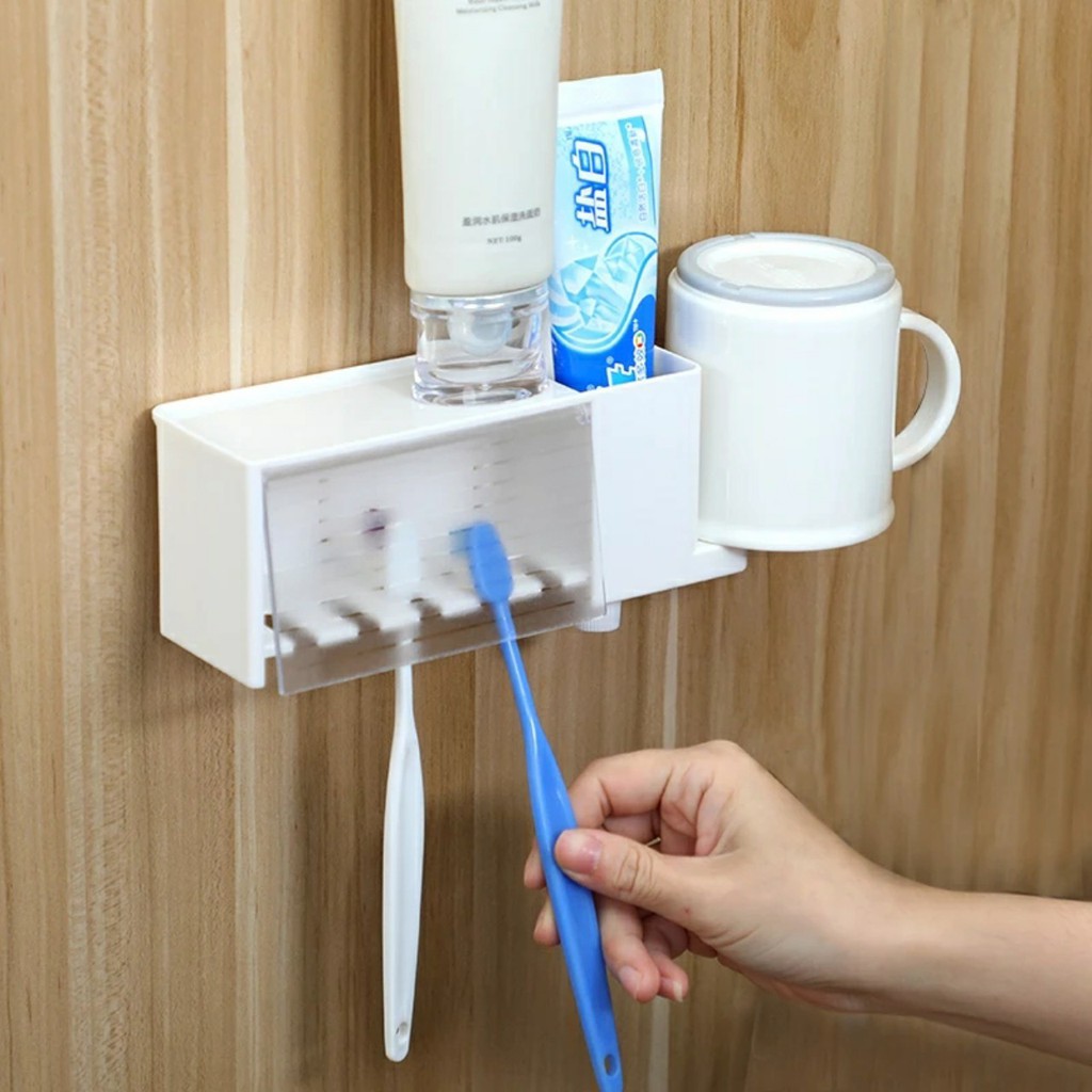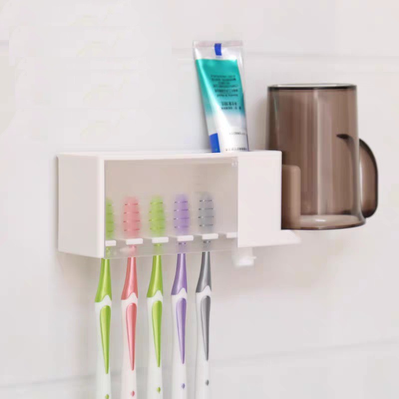 - Sản phẩm được thiết kế thông minh và tiện lợi, gồm 5 giá treo bàn chải đánh răng và 1 khe để ống kem đánh răng, giúp thao tác lấy kem đơn giản.