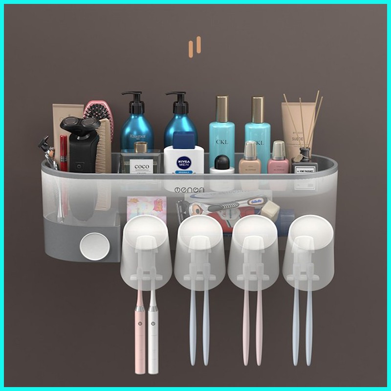 Nhà Cửa & Đời Sống > Đồ dùng phòng tắm > Kệ để đồ phòng tắm || Kệ Treo Bàn Chải Đánh Răng OENON Tặng Kèm 4 Cốc Nhựa ABS - Kệ Dán Tường Để Đồ Nhà Tắm - OE041Còn hàng