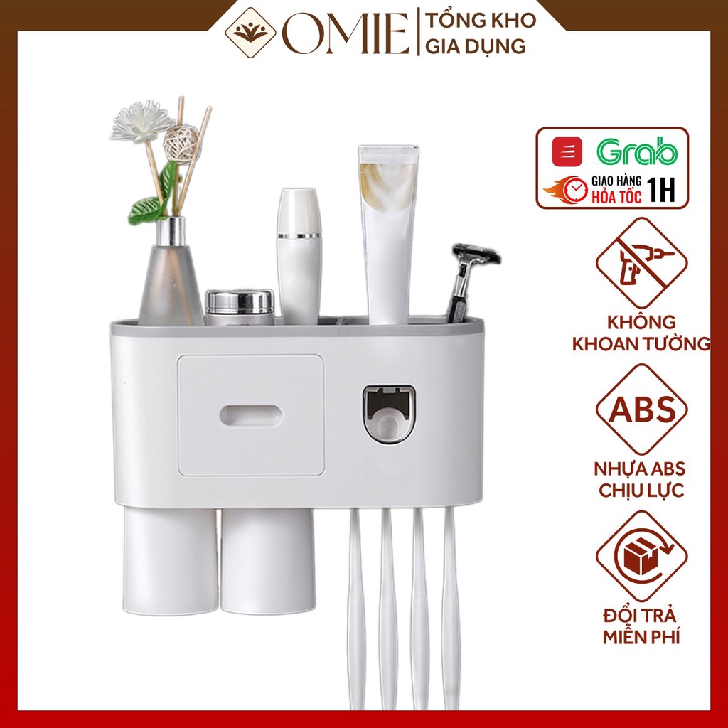 KỆ TREO BÀN CHẢI ĐÁNH RĂNG, TÍCH HỢP CỐC TỪ TÍNH VÀ ĐỒ LẤY KEM THÔNG MINH PHÂN LOẠI 2 CỐC