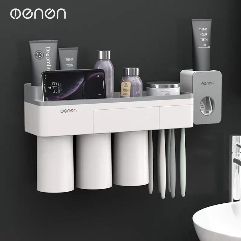 KỆ TREO BÀN CHẢI ĐÁNH RĂNG, TÍCH HỢP CỐC TỪ TÍNH VÀ ĐỒ LẤY KEM THÔNG MINH PHÂN LOẠI 3 CỐC