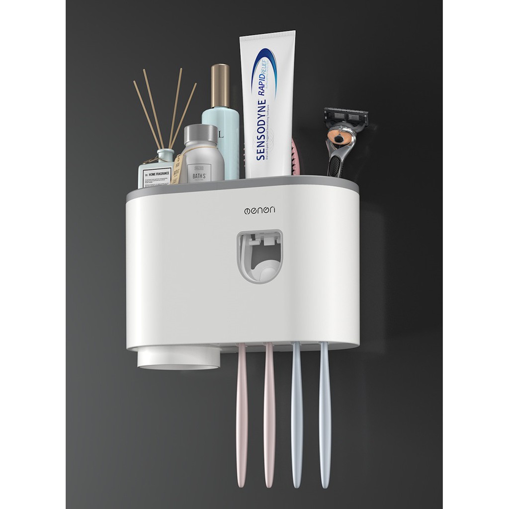 Nhà Cửa & Đời Sống > Đồ dùng phòng tắm > Giá, móc treo đồ nhà tắm || Kệ treo bàn chải kem đánh răng nhà tắm OENON kèm 1 cốc lắp đặt dán tường - OEKEMCòn hàng