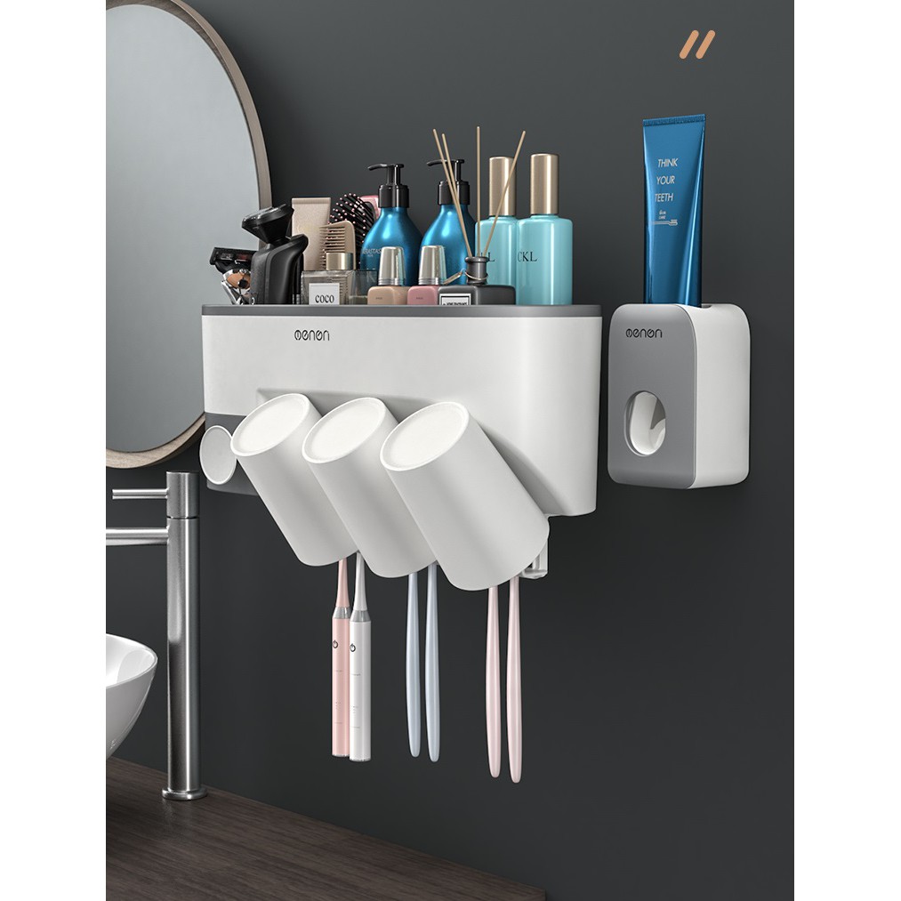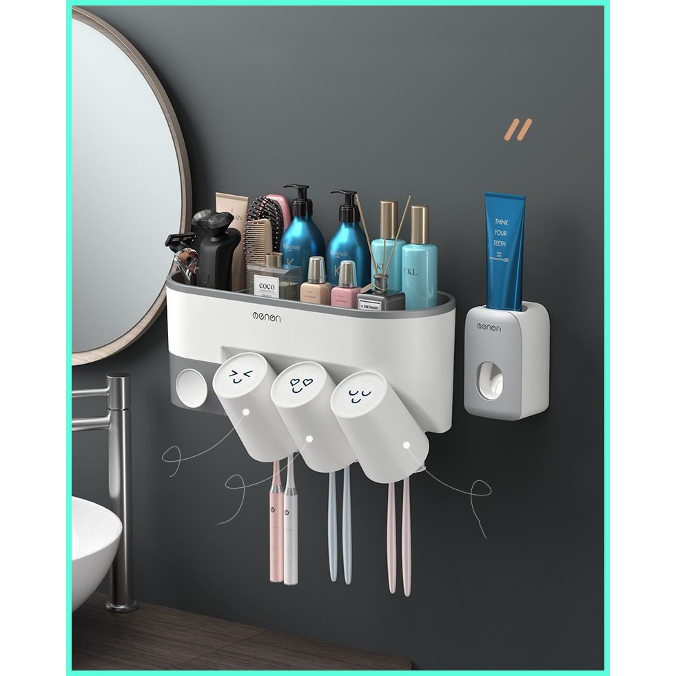 Nhà Cửa & Đời Sống > Đồ dùng phòng tắm > Phụ kiện nhà tắm, nhà vệ sinh || Kệ Treo Bàn Chải Nhà Tắm OENON chất liệu nhựa ABS cao cấp tặng kèm 3 Cốc lắp đặt dán tường - OE041Còn hàng