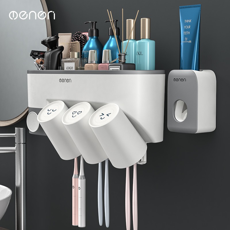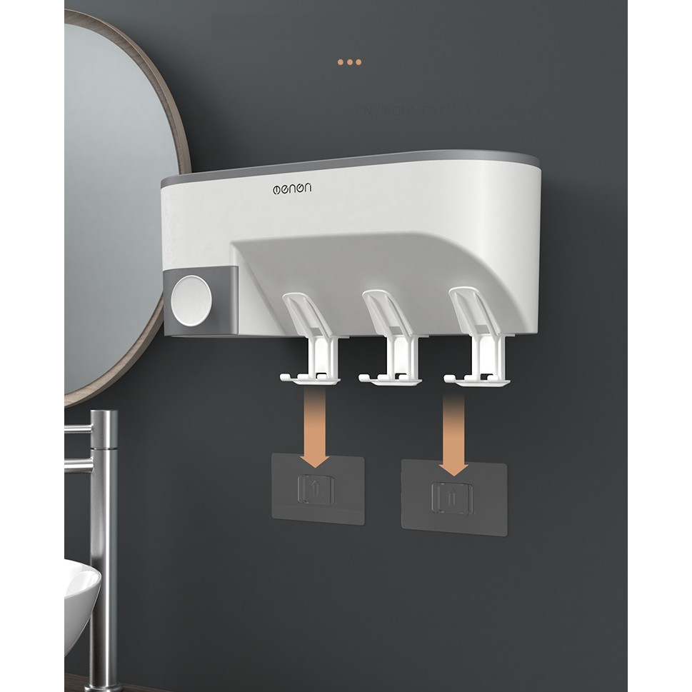 Kệ Treo Bàn Chải Nhà Tắm OENON chất liệu nhựa ABS cao cấp tặng kèm 3 Cốc lắp đặt dán tường - OE041