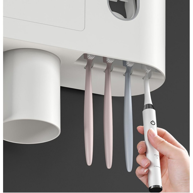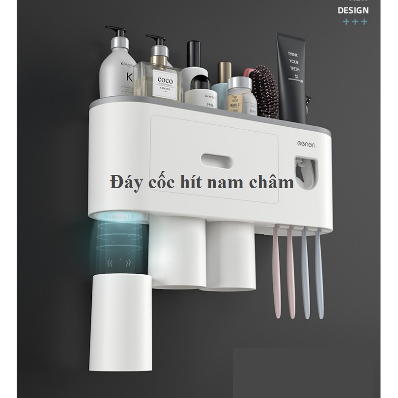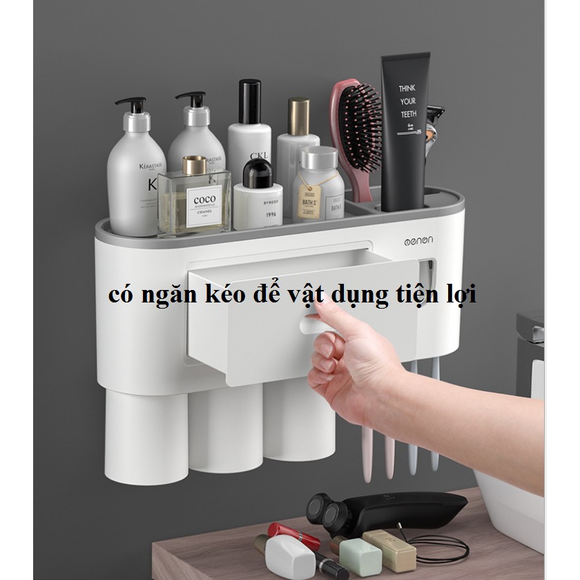 Kệ treo bàn chải thông minh kèm ly đế hút nam châm có Nhả Kem Đánh Răng Cao Cấp OENON