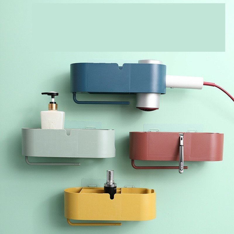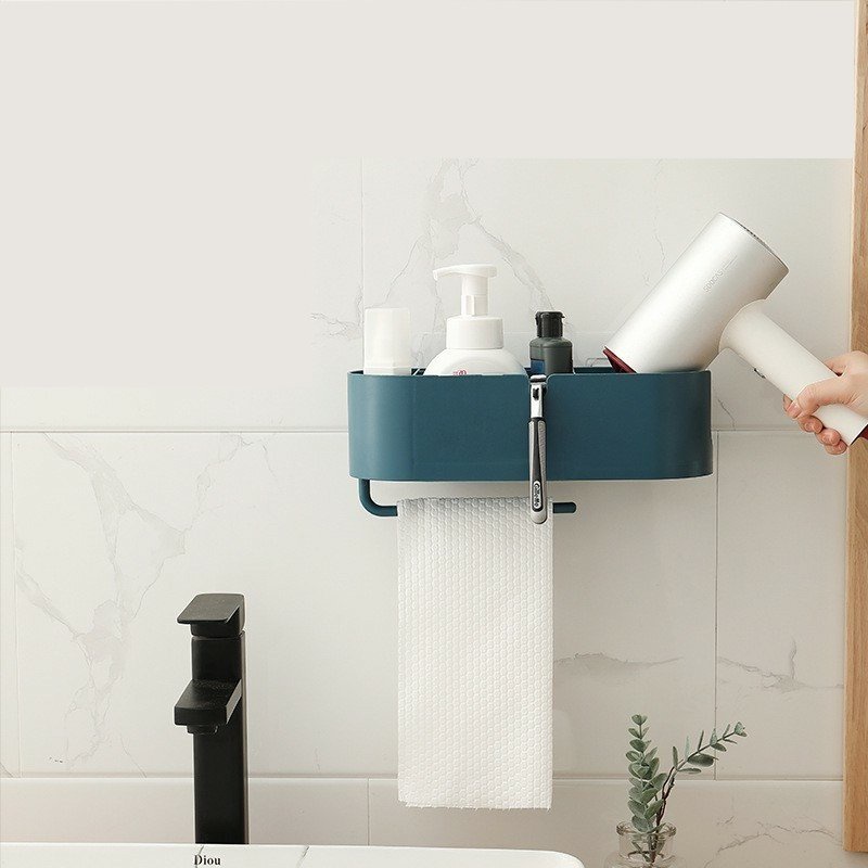 Kệ treo đa năng có giá treo máy sấy tóc nhà tắm không cần khoan vít (kèm keo dán siêu dính)