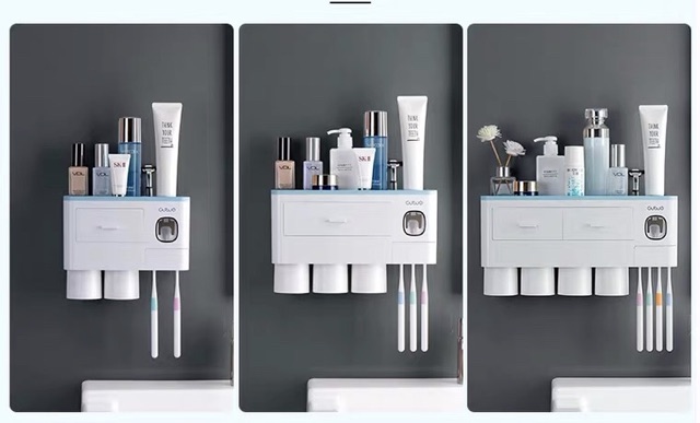 Kệ treo đồ nhà tắm- Bộ nhả kem đánh răng cao cấp Oenon cho mọi gia đình