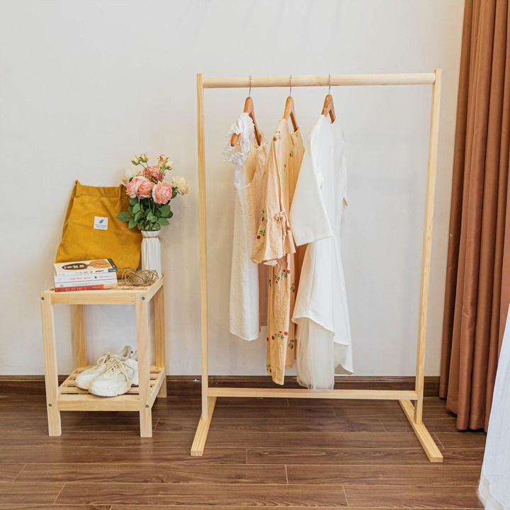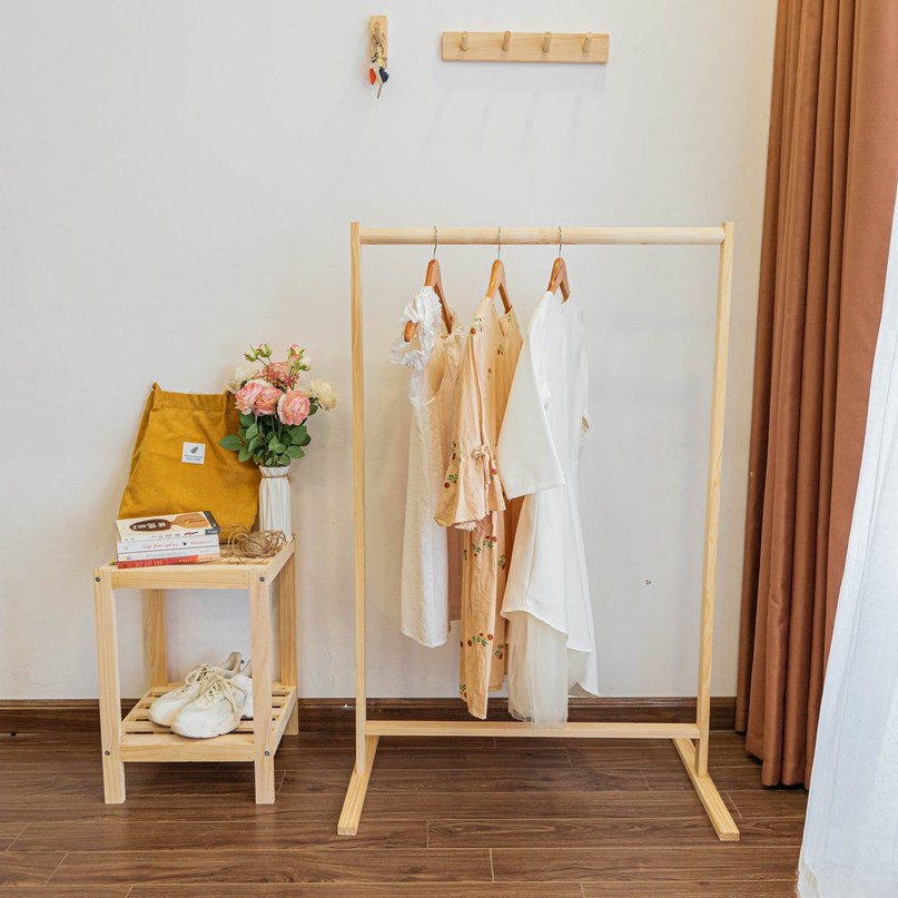 - Giá treo quần áo gỗ thanh đơn phù hợp với các căn hộ nhỏ, chung cư, dịch vụ homestay,...