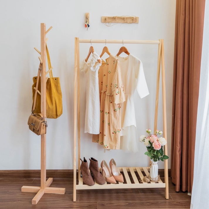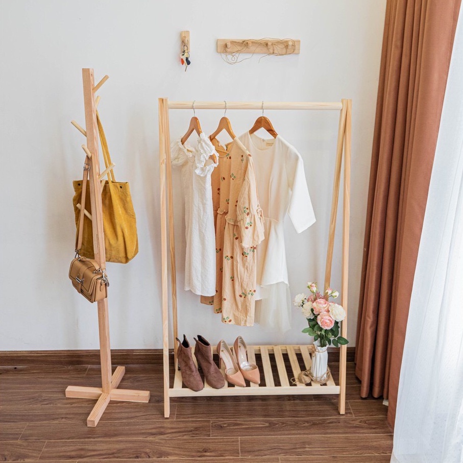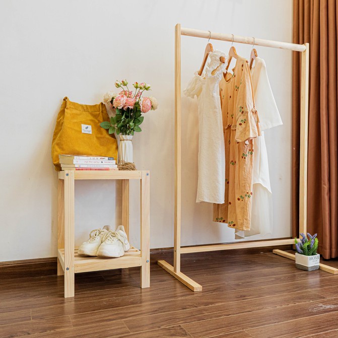 - Giá treo quần áo gỗ thông dễ dàng tháo lắp, di chuyển & tùy biến mục đích sử dụng theo ý muốn.