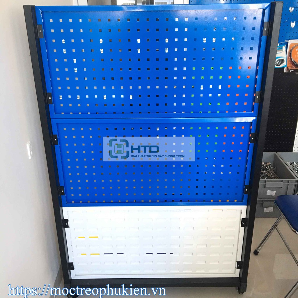 HTD-03 là sự kết hợp giữa bảng treo dụng cụ cơ khí HTD-01 và bảng treo hộp đựng ốc vít HTD-02. Với kích thước chuẩn là 900*450mm giúp bạn kết hợp với nhau một cách dễ dàng. Bạn có thể tùy chỉnh vị trí của tấm HTD-02 xuống dưới cùng hoặc lên phía trên bằng cách tùy chỉnh khi lắp đặt.