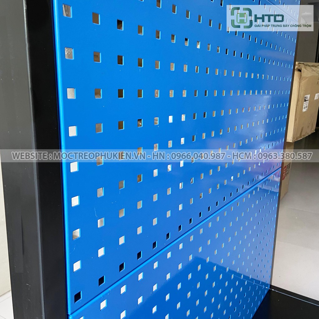 Phần trên cùng của bộ kệ được thiết kế 2 bảng lỗ đứng, bạn cũng có thể lắp đặt thêm các móc treo dụng cụ đi kèm.