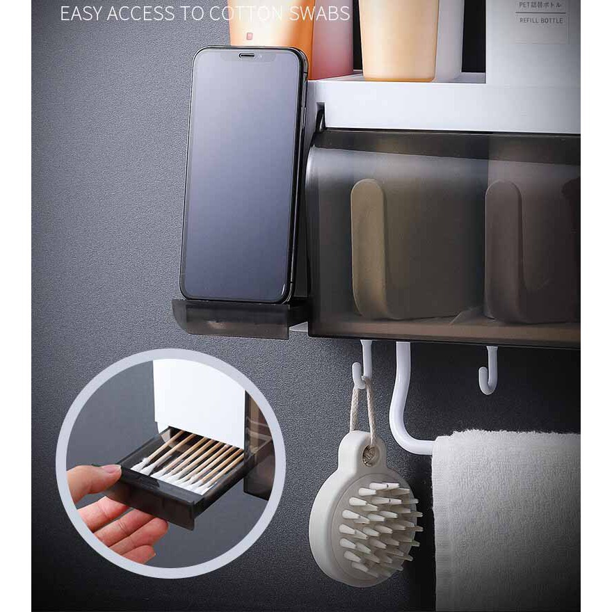 Giới thiệu Bộ kệ treo, kệ đựng bàn chải, kem đánh răng, tặng kèm 3 cốc