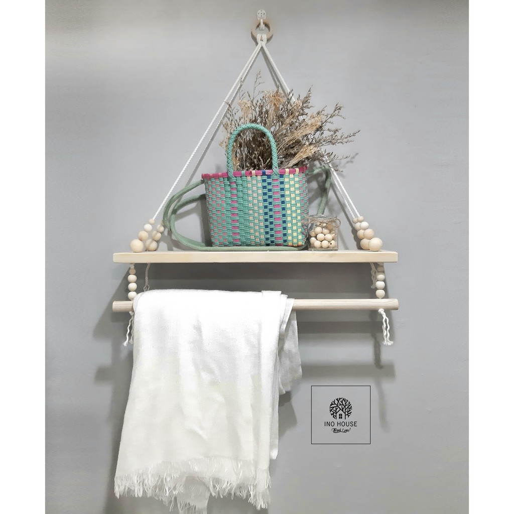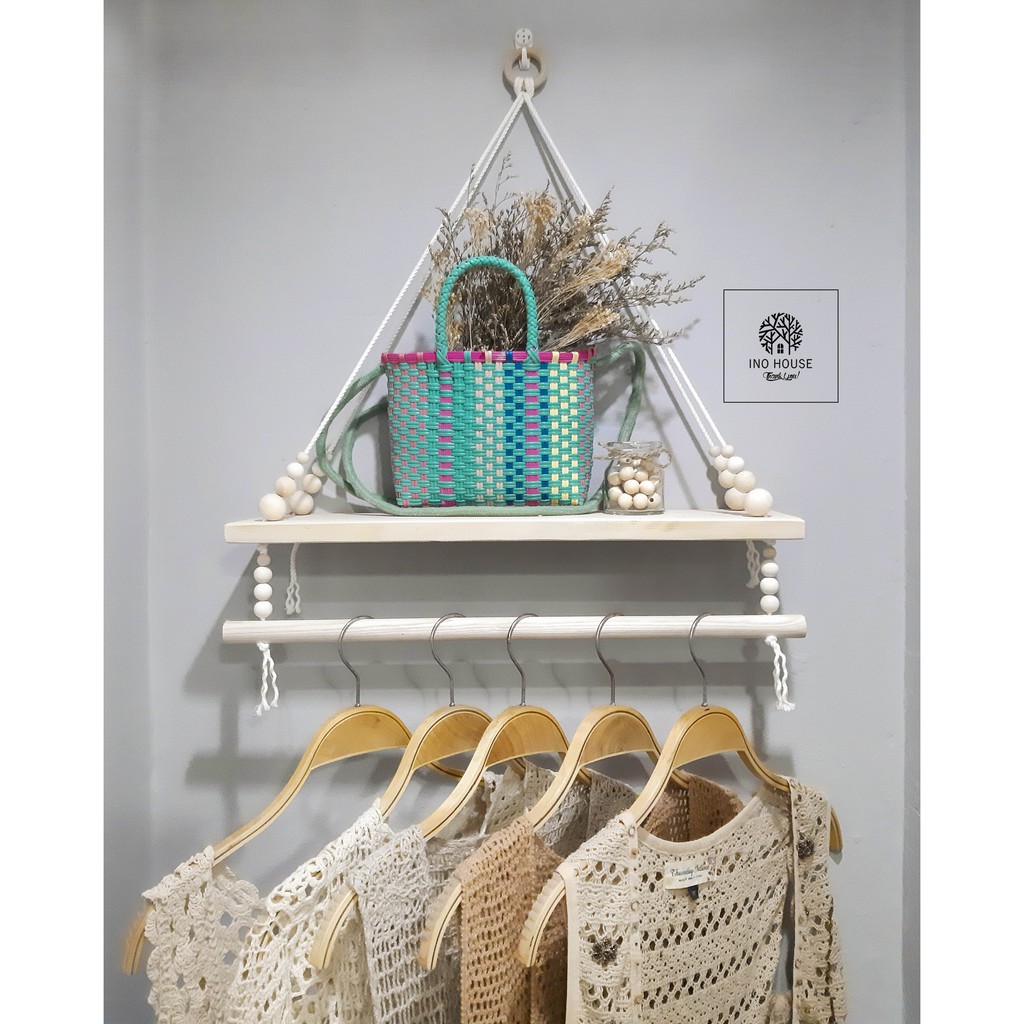 Kệ treo trang trí nội thất có thể dùng cho các không gian phòng khách, phòng ngủ, shop, homestay, treo chậu cây trang trí...rất xinh và dễ dùng, dây treo rất chắc chắn. kệ kết hợp với thanh treo có thể phối hợp máng thêm nhiều vật dụng trang trí, khăn, móc đồ....Chất liệu:
