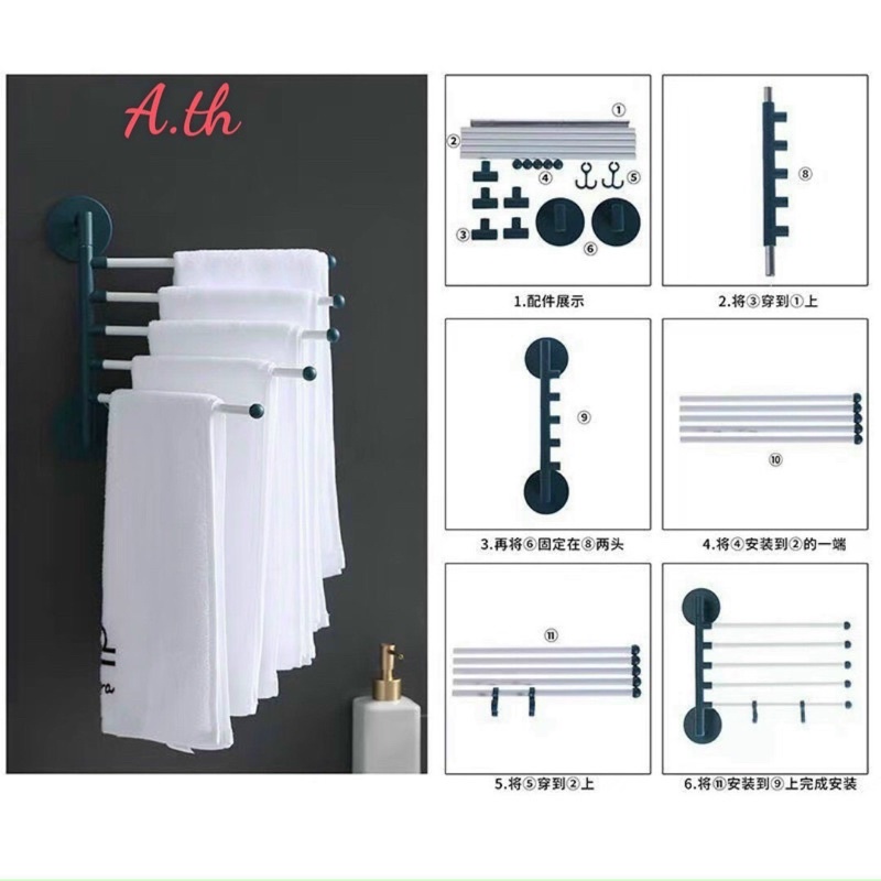 + 5 thanh inox treo khăn móc đồ tiện lợi có thể xoay 180 độ