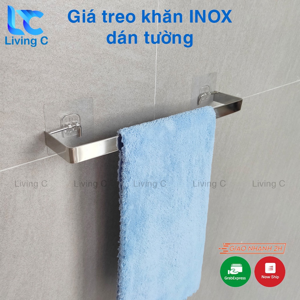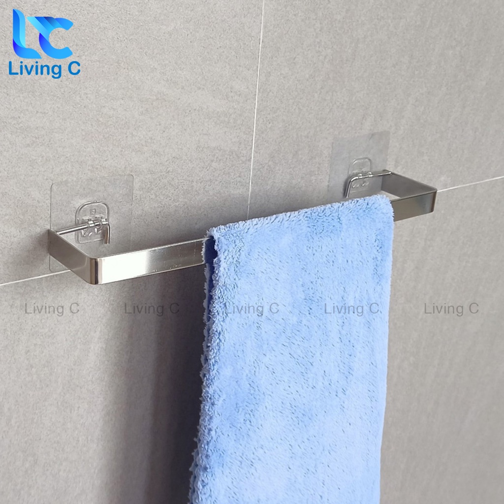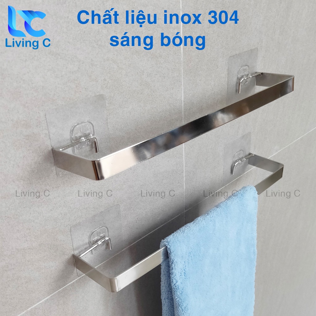 Kệ treo khăn dán tường nhà tắm Living C , thanh giá kệ treo khăn tắm INOX có sẵn miếng dán tường _TKI
