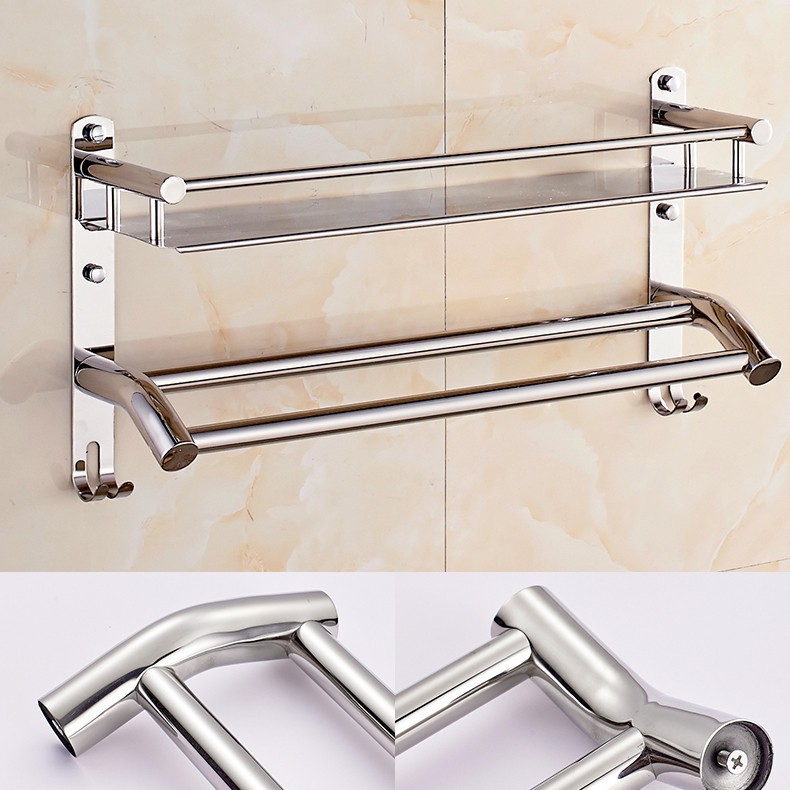 - Kệ treo khăn 2 tầng inox giúp cho không gian phòng tắm nhà bạn thêm sang trọng.