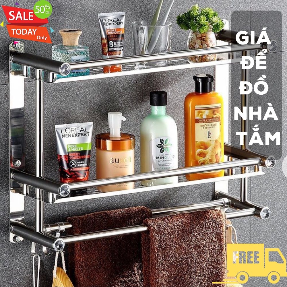 Nhà cửa & Đời sống > Đồ dùng phòng tắm > Kệ để đồ phòng tắm || Kệ treo khăn nhà tắm inox,Kệ để đồ nhà tắm có móc treo khăn lắp đặt không cần khoan tường ATILA SHOPCòn hàng