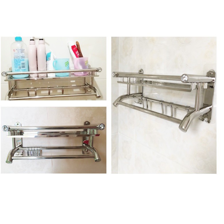 - Kệ treo khăn 2 tầng inox giúp cho không gian phòng tắm nhà bạn thêm sang trọng.