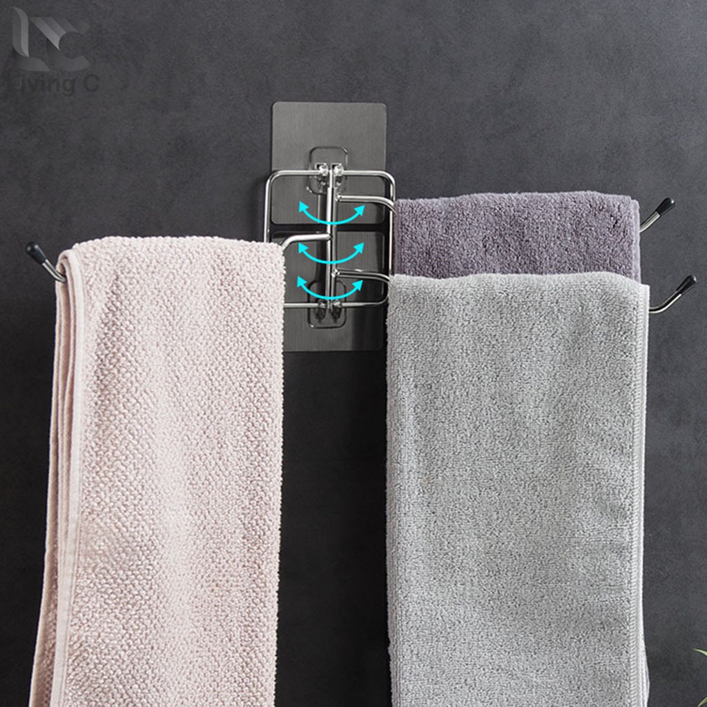 Giới thiệu Kệ treo khăn nhà tắm Living C , giá kệ treo khăn 3 thanh Inox xoay 180 độ dày 5 ly cao cấp dán tường _K136