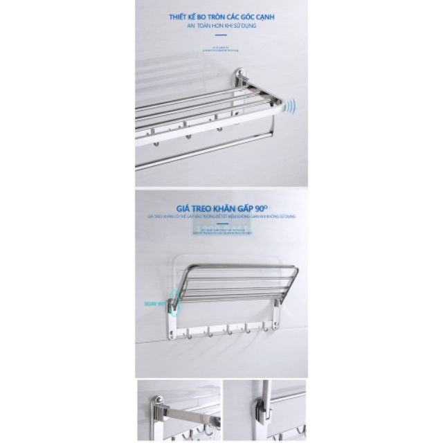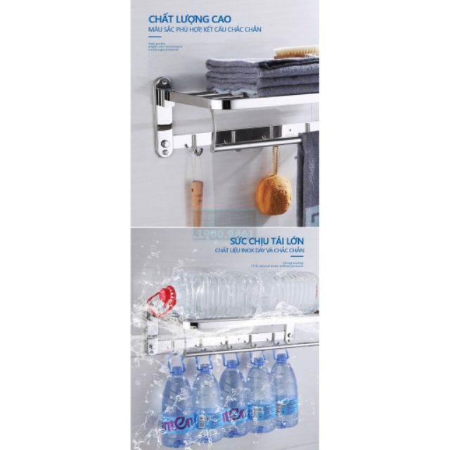 Với thiết kế thông minh và linh hoạt, Kệ treo khăn tắm Inox SUS 304 đa chức năng) sẽ giúp bạn để được nhiều đồ hơn và tận dụng tối đa không gian của phòng tắm. Sản phẩm kệ đa năng sẽ mang đến cho phòng tắm của bạn sự gọn gàng và sang trọng