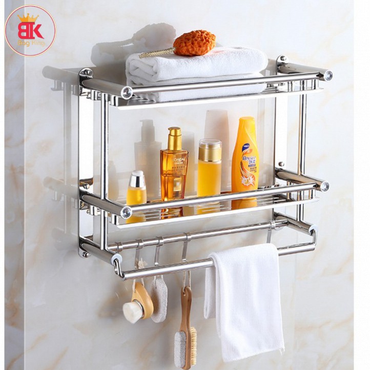 -Giá gồm nhiều thanh ngang được kết cấu hợp lý & cực kỳ chắc chắn, bạn có thể để quần áo, phụ kiện tắm trên kệ & treo vắt khăn bên dưới thật gọn gàng & tiện lợi khi sử dụng.