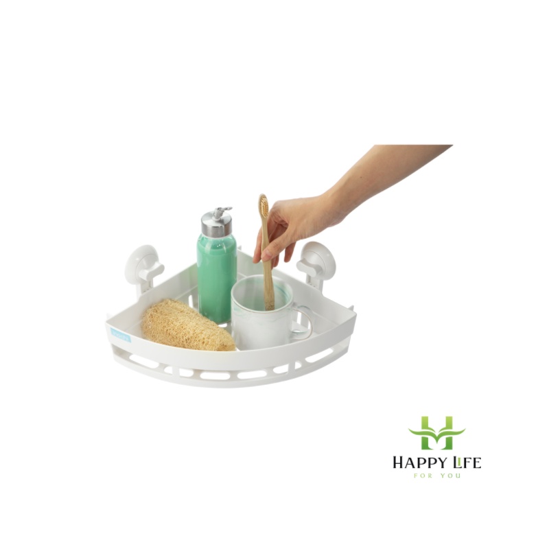 + Kệ treo góc Nachi được thiết kế như hình tam giác có góc vuông, khớp cạnh vào tường, cùng với 2 cục hít để giúp kệ được bám dính