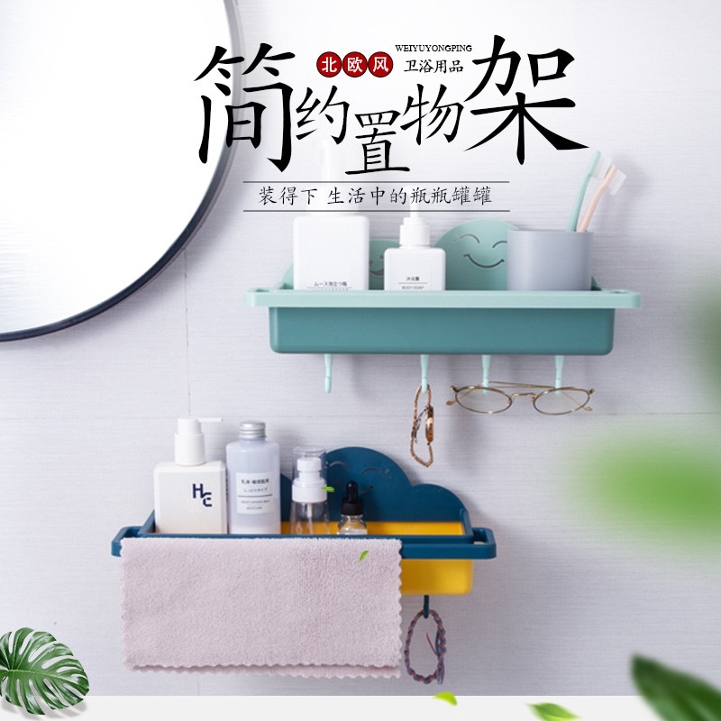 Nhà cửa & Đời sống > Đồ dùng phòng tắm > Kệ để đồ phòng tắm || Kệ treo nhà tắm dán tường hình ĐÁM MÂY MẶT CƯỜI có thanh treo khăn và 4 móc treo - Giá treo đồ nhà tắm nhà bếp đa năngCòn hàng
