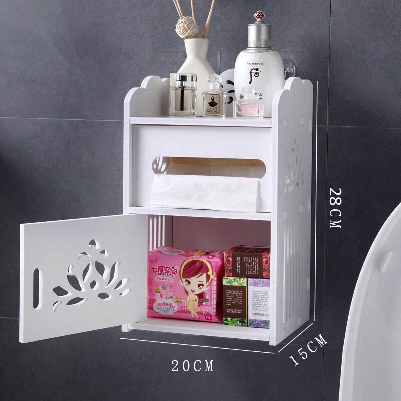 Nhà cửa & Đời sống > Đồ dùng phòng tắm > Kệ để đồ phòng tắm || Kệ treo nhà tắm không khoan tường, tủ đựng mỹ phẩm, kệ treo tường VHT1-2 bằng gỗ chịu nước màu trắng sang trọngCòn hàng