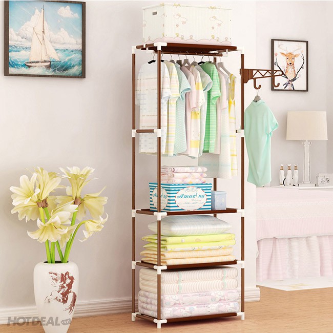 Kệ thiết kế gồm 3 ngăn 4 tầng giúp sắp xếp nhiều đồ dùng, quần áo gia đình.- Ngoài quần áo, sản phẩm còn thuận tiện đặt để các loại chăn màn, túi xách, giày dép…