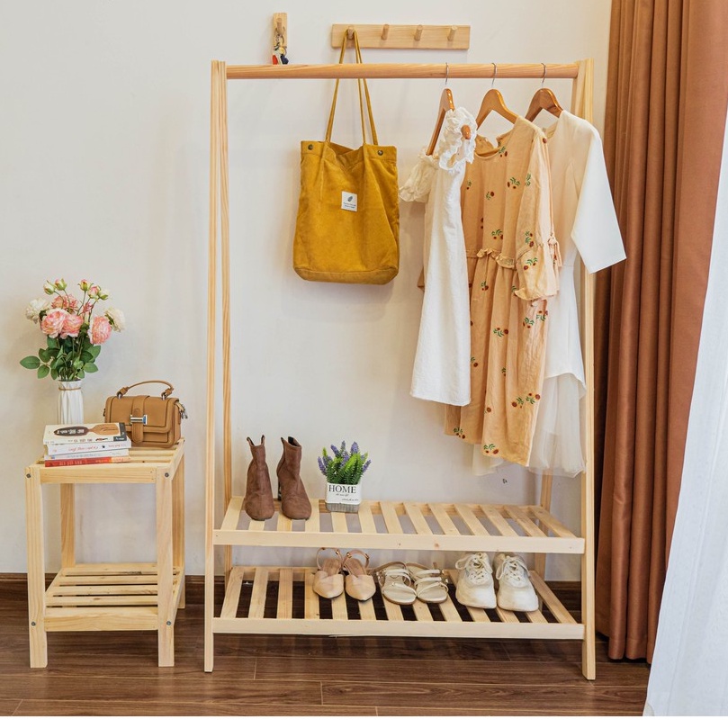 - Giá gỗ thông treo đồ đa năng phù hợp cho Shop thời trang treo các sản phẩm quần áo .