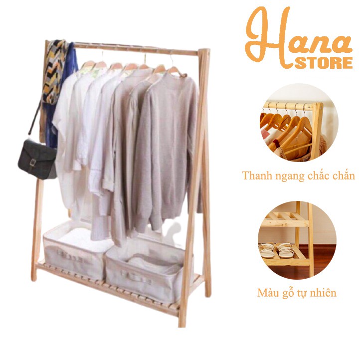Kệ treo quần áo chữ A 2 tầng gỗ thông cao cấp - Kệ gỗ treo quần áo chữ a 2 tầng - Chống mối mọt - Bảo hành 12 tháng