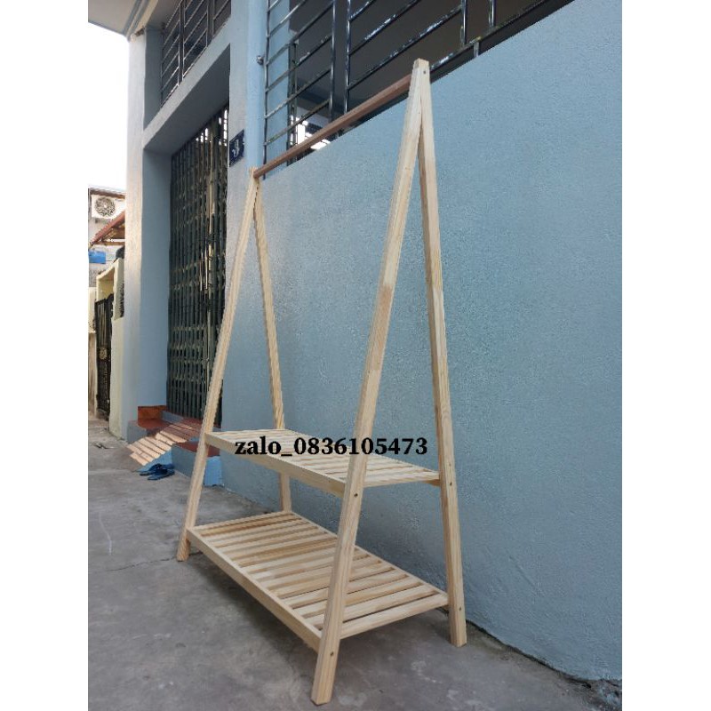 Kệ treo quần áo chữ A 2 tầng bằng gỗ decor