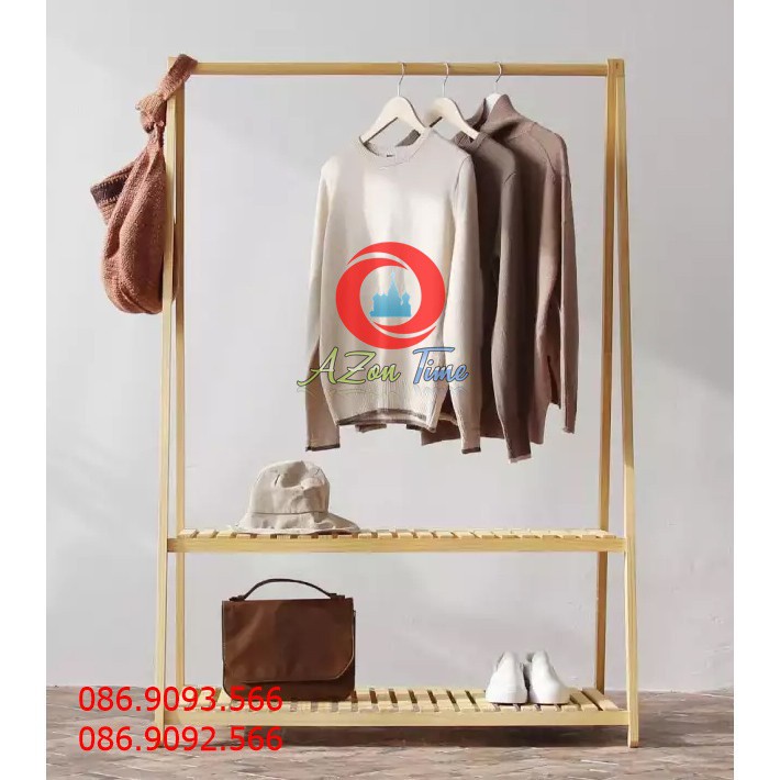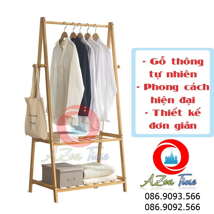 Kệ treo quần áo chữ A 2 tầng - Giá treo quần áo chữ A 2 tầng Freeship - GỖ THẬT Gỗ thông cao cấp nhập khẩu-Azonshop